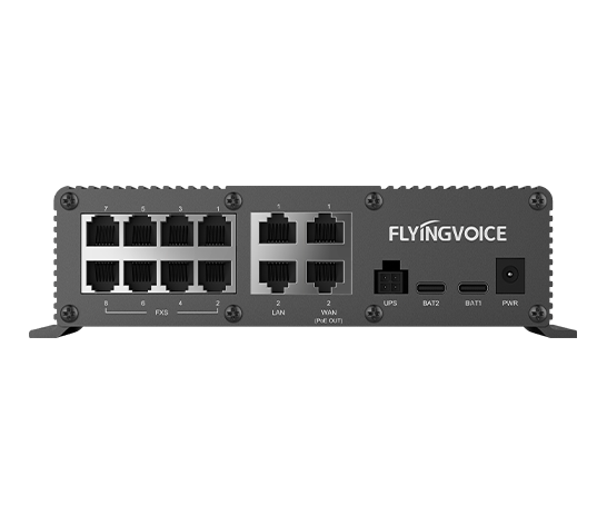 Flyingvoice PR08 es una puerta de enlace ATA altamente integrada para la solución de reemplazo de POTS, proporciona 8 puertos FXS para admitir 8 conexiones externas y conectarse fácilmente al panel de llamada de emergencia del ascensor, panel de alarma contra incendios/robo, máquinas de fax, cajeros automáticos/terminales POS, etc. Y el PR08 integra 2 puertos WAN gigabit que admiten salida PoE y conmutación por error de red, 1 puerto UPS para salida de energía y 2 puertos USB tipo C que admiten bancos de energía externos para lograr un funcionamiento de 24 horas en caso de corte de energía y garantizar una conexión ininterrumpida con llamadas y red. Puede optar por utilizar el PR08 con Flyingvoice LM150 o un enrutador de terceros para formar una solución de comunicación IP "4G/5G + reemplazo de POTS".